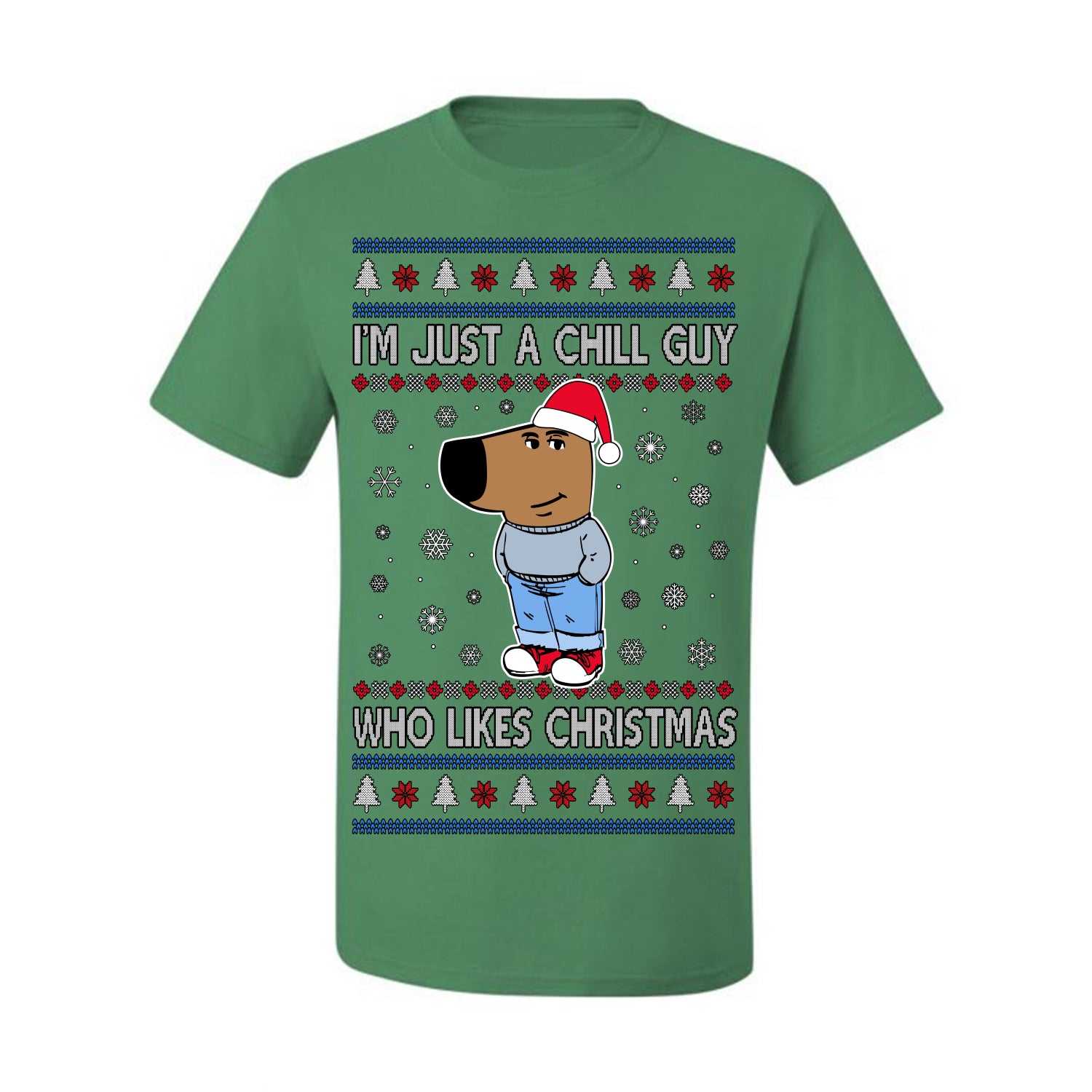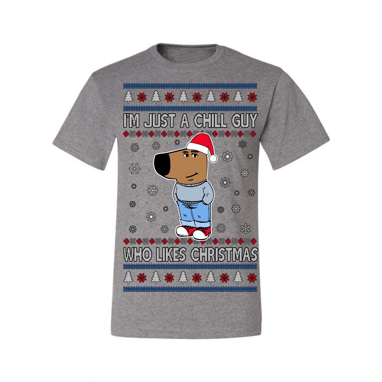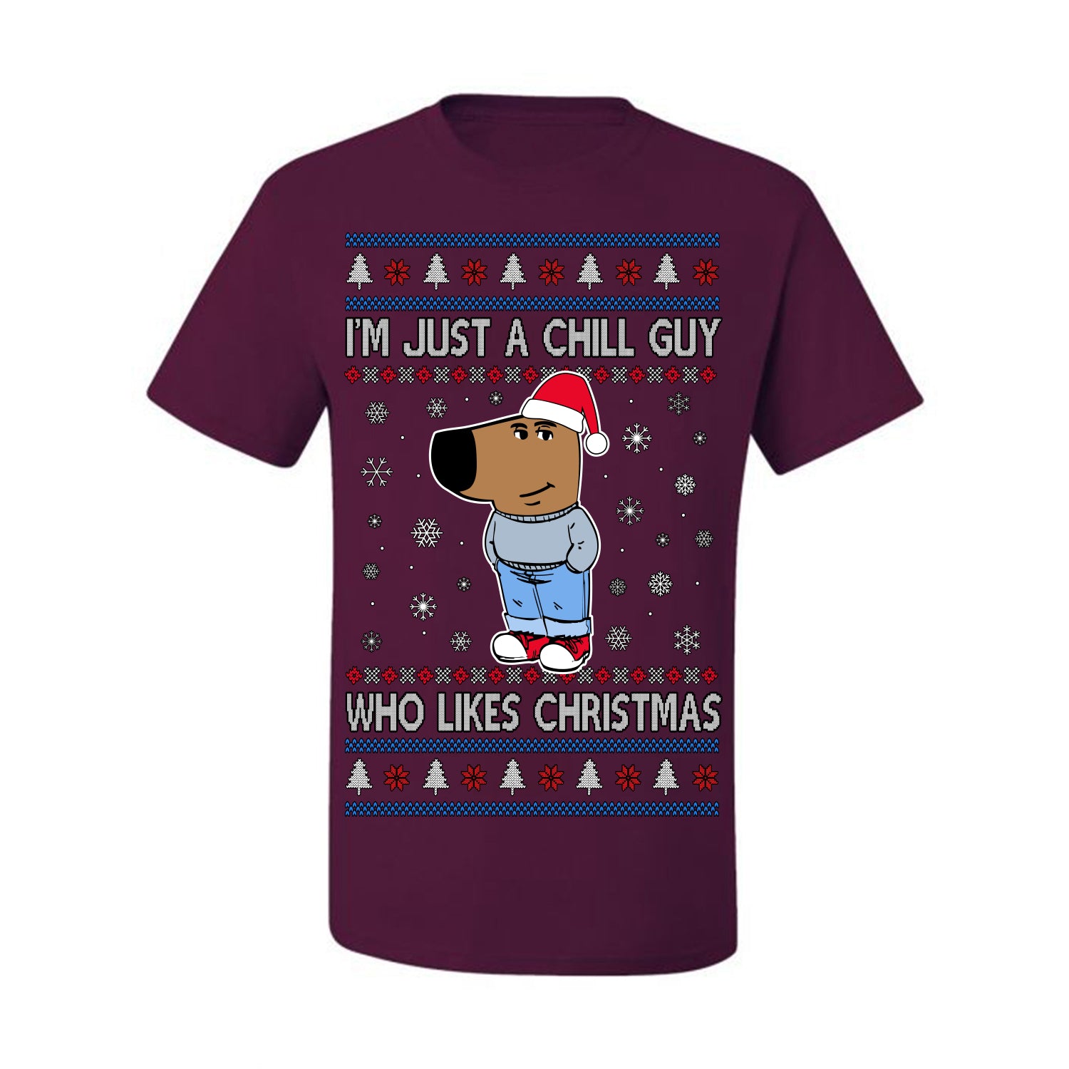 I'm Just a Chill Guy Who Likes Christmas, Viral Dog My New Character Meme Coin CHILLGUY Funny Internet Memes, Ugly Christmas Sweater Ugly Christmas Men's T-Shirt